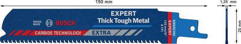 Säbelsägeblatt Expert Thick Tough Metal Länge 150 mm Breite 25 mm Zahnteilung TPI 8 3 mm S-Schaft 10 Stück / Karte E6423408