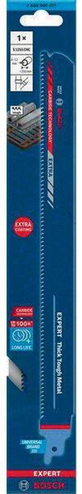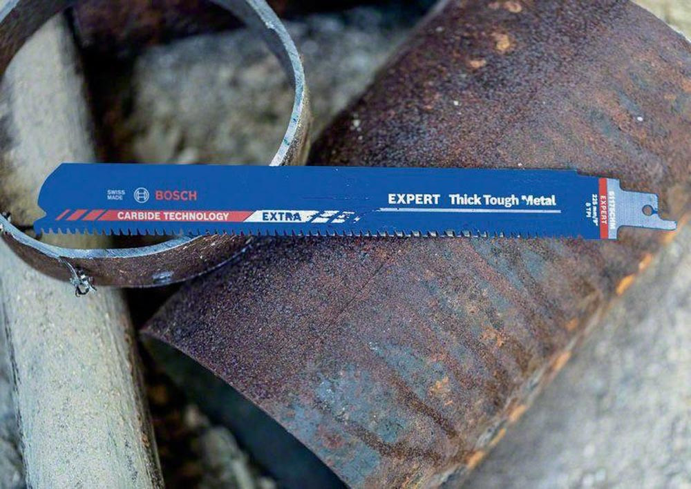 Bosch Carbide Technologie für langlebiges Schneiden von dickem, zähem Metall · die aus Hartmetall bestehenden Zähne werden auf ein besonders robustes, breites Blatt aus Stahl mit hoher Materialstärke geschweißt – perfekt für gerade Schnitte und Widerstandsfähigkeit · passend für alle S-Schaft-Säbelsägen