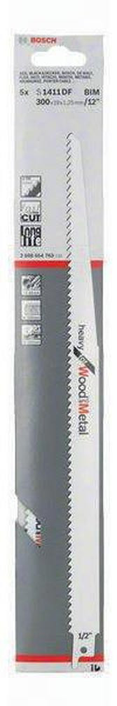 Säbelsägeblatt S 1411 DF Länge 300 mm Breite 19 mm Zahnteilung TPI 6 4,3 mm geschränkt, gefräst 5 Stück / Karte