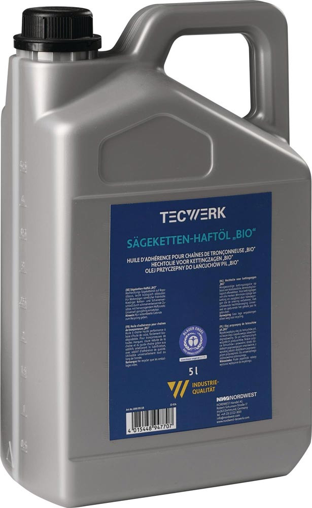 Hochleistungs-Sägekettenöl auf Rapsölbasis, umweltfreundlich, biologisch abbaubar · ausgezeichnet mit dem Blauen Engel · hoher Verschleißschutz · optimale Haftfähigkeit · schützt wirkungsvoll vor Korrosion · zur Schmierung von Hochleistungs-Motorsägen aller Fabrikate · optimale Vollschmierung im Sommer und Winter, auch unter erschwerten Einsatzbedingungen und aufgrund hoher Leistungsreserven auch beim Sägen von Hartholz · Dichte/20 °C 920 kg/m³ DIN EN ISO 12185