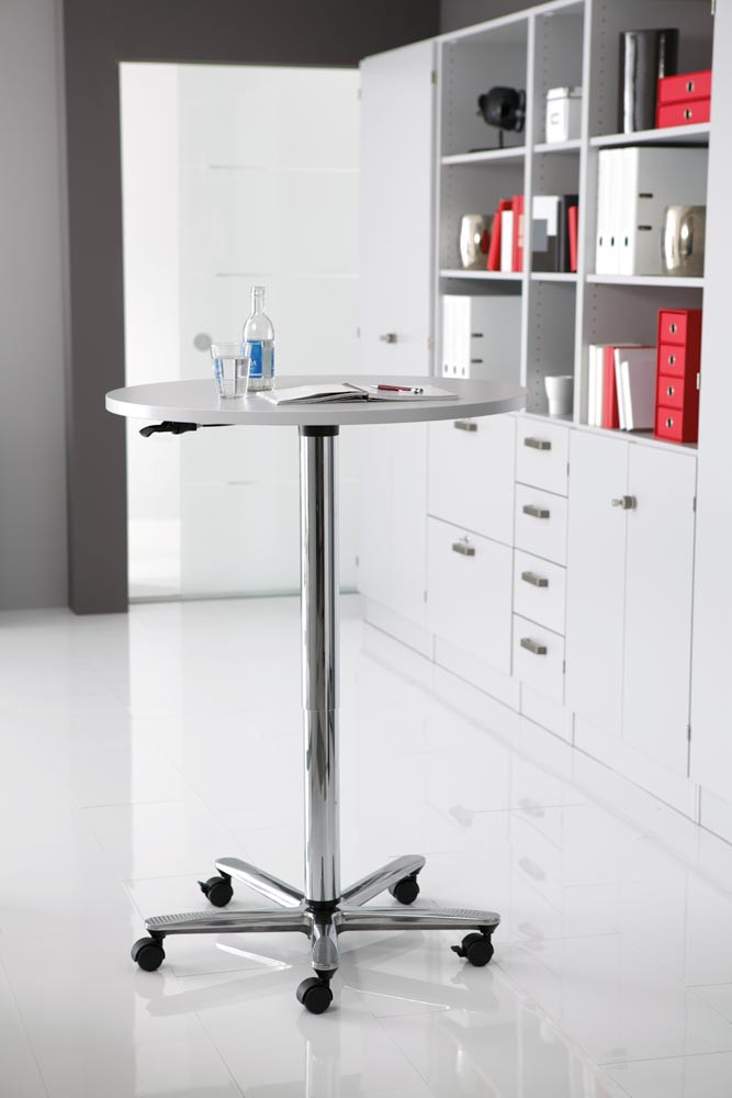 Säulentisch, Durchm.xH 800x720-1140 mm, Gasdruckfeder, Tischplatte 25 mm lichtgrau, Gestell chrom, inkl. Gleiter und 5 Rollen, 2 mit Feststeller