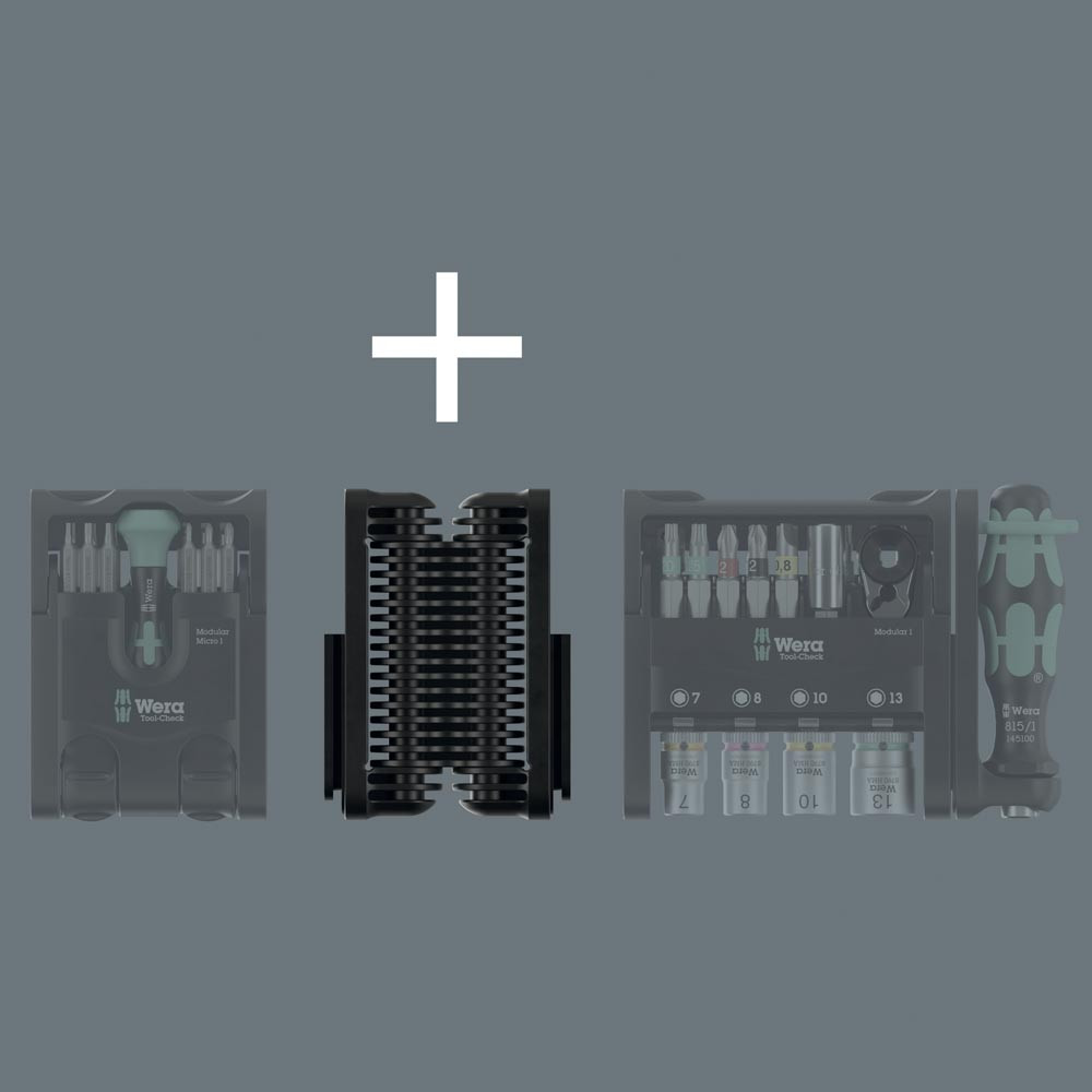 Flexibles Scharnier für das Tool-Check Modular-System ∙ Das Scharnier ermöglicht eine flexible Verbindung von zwei Tool-Check Modular Elementen ∙ Darüber hinaus können die verbundenen Elemente kompakt zusammengeklappt werden