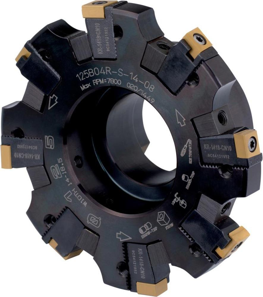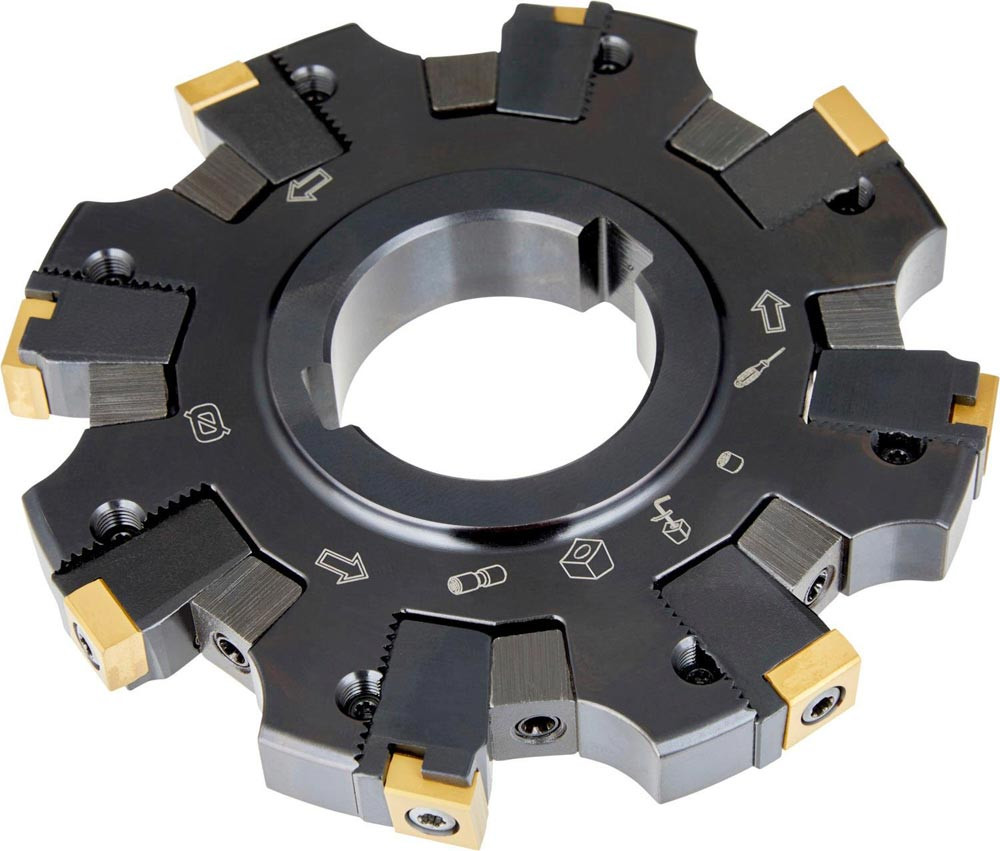 Scheibenfräser mit positiver/negativer Geometrie zum spannen von 8 Stück CNHQ 1005.. doppelseitigen Wendeschneidplatten · Schnittdurchmesser 125mm mit 90° Anstellwinkel und 40mm Verbindungsbohrung gemäß DIN 8030 · zum tiefen Nutfräsen mit einer schnittbreite von 14,0 ÷ 18,5mm