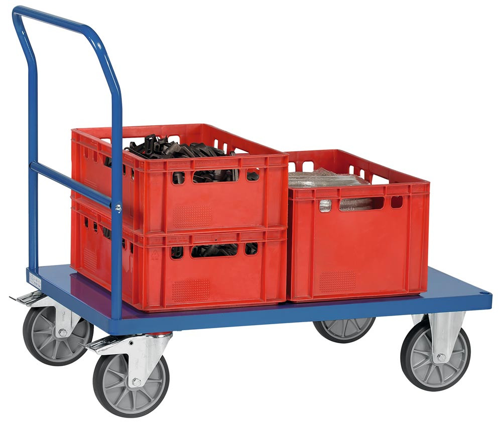 Schiebebügelwagen mit Stahlblechplattform, Ladefläche LxB 1000x700 mm, Außenmaße LxBxH 1125x709x990 mm, Traglast 600 kg, RAL 5007 brillantblau EP537441