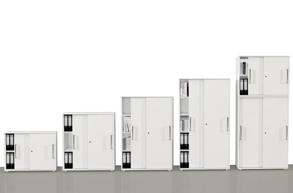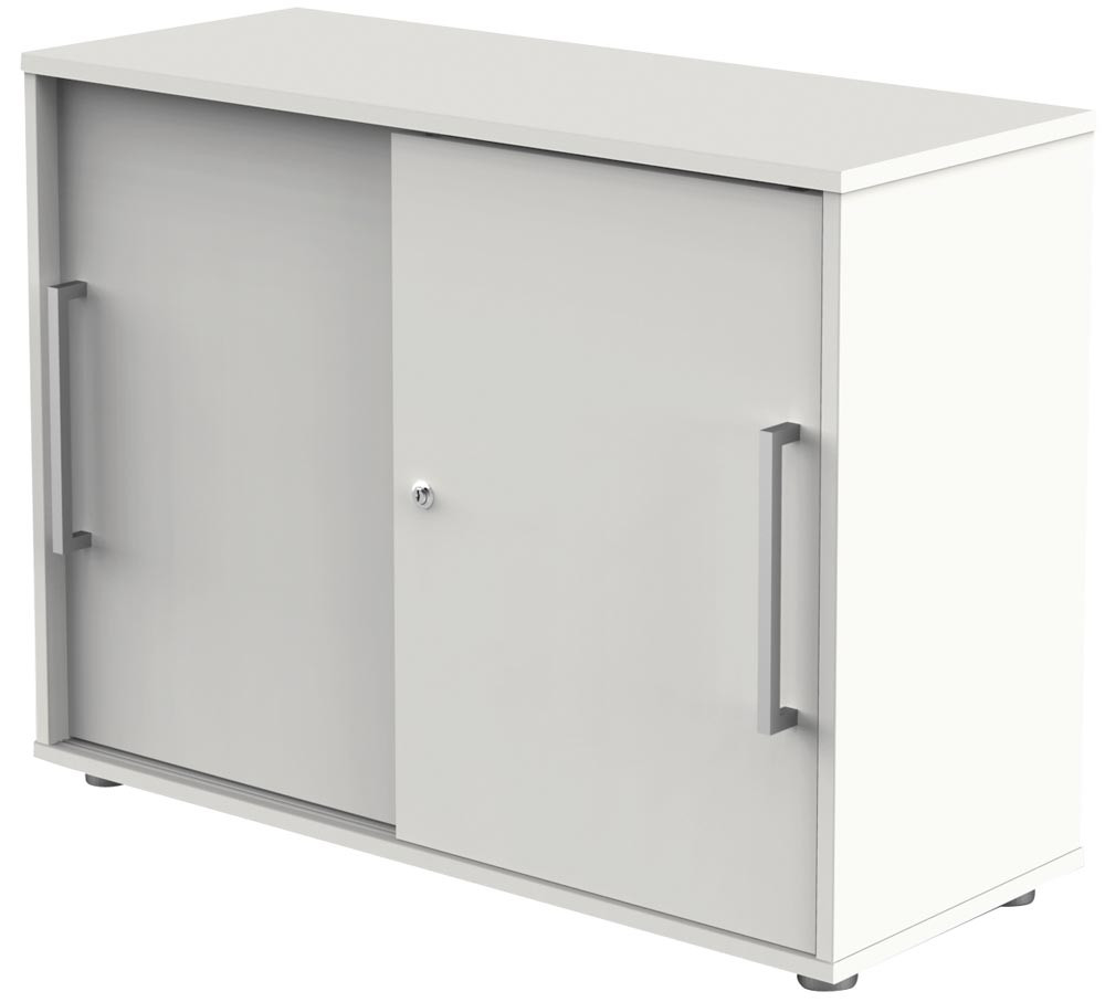Schiebetürenschrank, BxTxH 1000x400x750 mm, 2 OH, 1 Boden, Edelstahlgriffe, Schloss, weiß