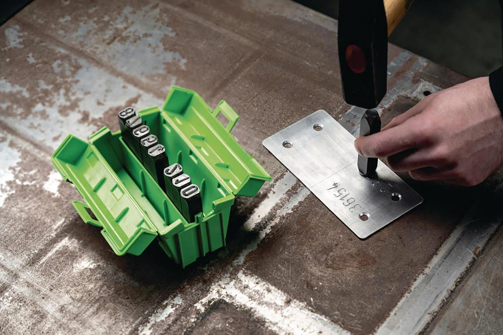 9 teilig · zur Kennzeichnung von Werkstücken mit einer Festigkeit bis zu 1300 N/mm² (42 HRC) · Härte an der Gravur: 58-61 HRc · mit Sichtgravur auf jedem Stempel · maschinengraviert · Schriftbild nach DIN 1451 · aus Werkzeugstahl, vernickelte Oberfläche · in Kunststoffbox · besonders geeignet für die Kennzeichnung von Edelstählen, da die vernickelte Oberfläche keinen Fremdrost hinterlässt