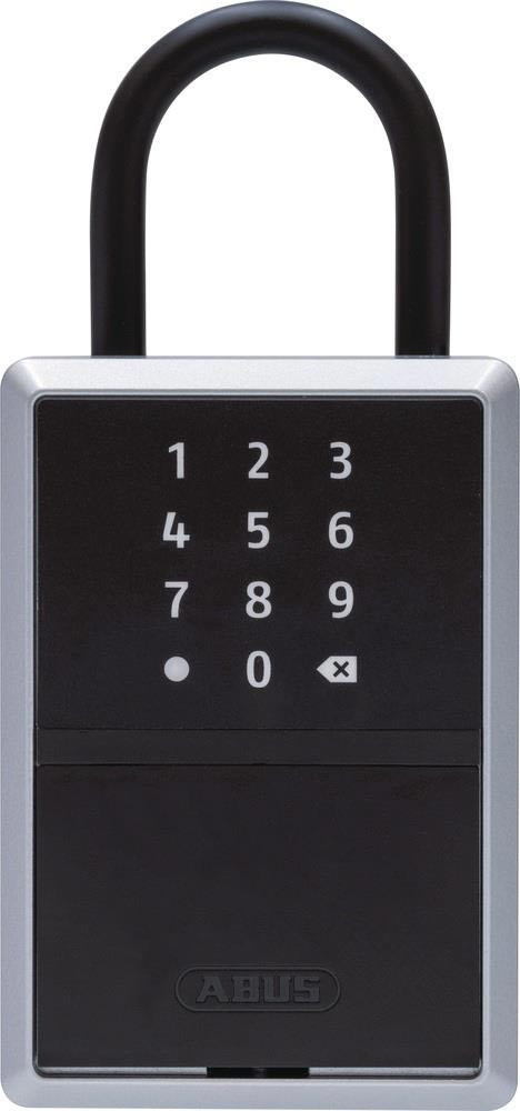 Technologie: stabiles Metallgehäuse · bis zu 20 Schlüssel, bis zu 3 Autoschlüssel oder 30 Plastikkarten passen in das Fach der Schlüsselbox · zur Aufhängung von Schlüsseln bzw. Schlüsselbunden sind 2 Haken vorhanden · Smarte Bedienung und Verwaltung der KEYGARAGE mit den kostenlosen Apps HomeTec Pro Bluetooth oder ABUS One · Überblick zur Nutzung der Schlüsselbox im übersichtlichen Ereignisprotokoll der App · automatische Verriegelung nach Schließen des Fachs · beleuchtetes Tastenfeld zur komfortablen Eingabe des Zahlencodes im Dunkeln · LED zur Statusmeldung (entriegelt, verriegelt, falsche PIN und Batterie schwach) · Batteriefach für 2 x AA Batterien, von außen zugänglich