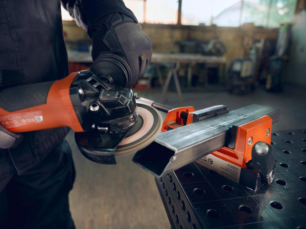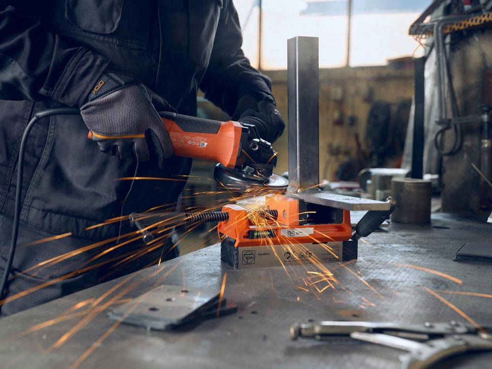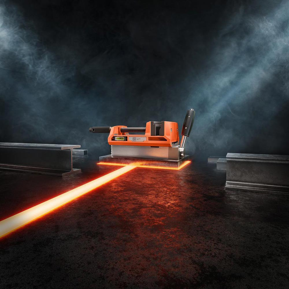 Permanentmagnet mit Schraubstock zum werkzeuglosen Spannen auf magnetischen Oberflächen, auch im Dünnblechbereich ab 4 mm Stärke · mobiles Modularsystem für sicheren Halt · Spannen in engen Räumen oder vertikalen Ebenen · wechselbare Spannbacken zum Spannen von größeren Materialien wie Bleche und Rohre · präzise Ausrichtung mithilfe einer 30%-igen Vormagnetisierung