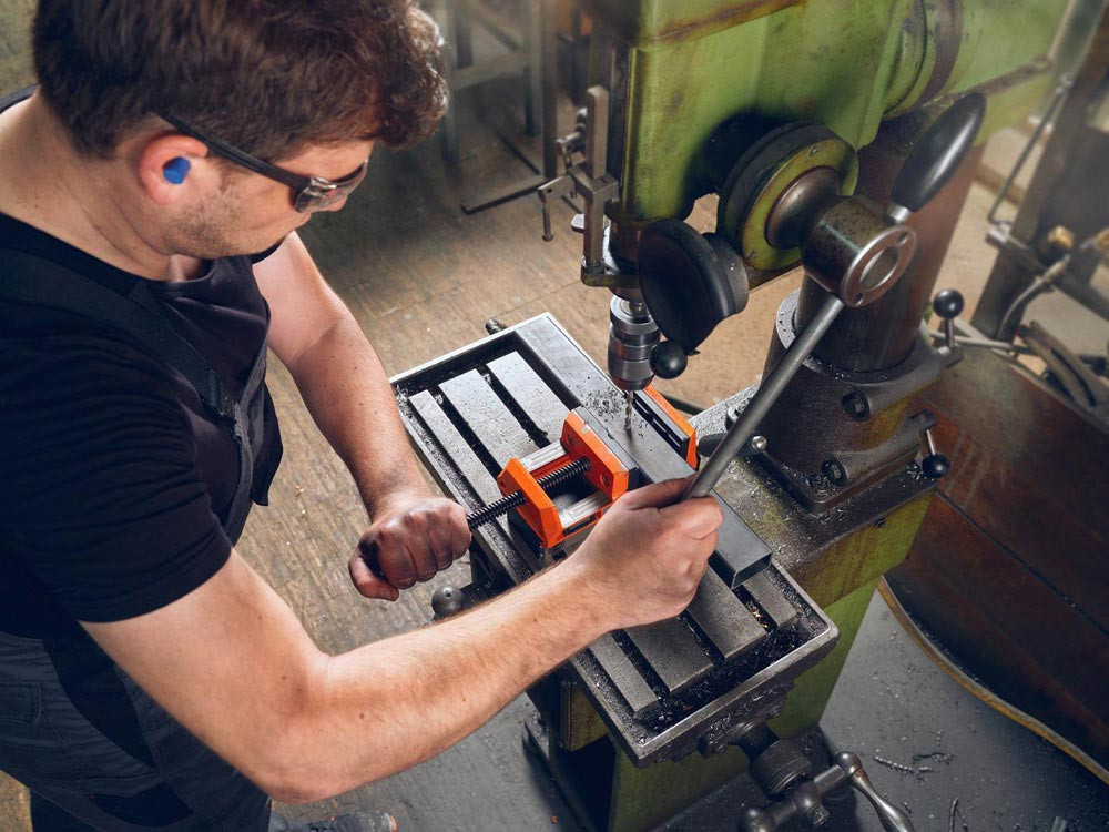 · Vorteile: Höchste Haltekraft auch auf dünnen Blechen (ab 4 mm Stärke) durch doppeltes Rotorensystem im Magnet. Kompakte Bauweise und schmaler Permanentmagnet ermöglichen das Spannen auch in beengten Platzverhältnissen. Präzise Arretierung durch Vormagnetisierung mit 30 % Magnethaltekraft. Spannbacken wechselbar zur Bearbeitung von Bauteilen unterschiedlicher Größen. Einspannen von Bauteilen zur weiteren Bearbeitung mit unterschiedlichen Elektrowerkzeugen, z.B. Winkelschleifer, Bohrschrauber, Sägen, MULTIMASTER etc. Bohrungstiefe 35 mm.