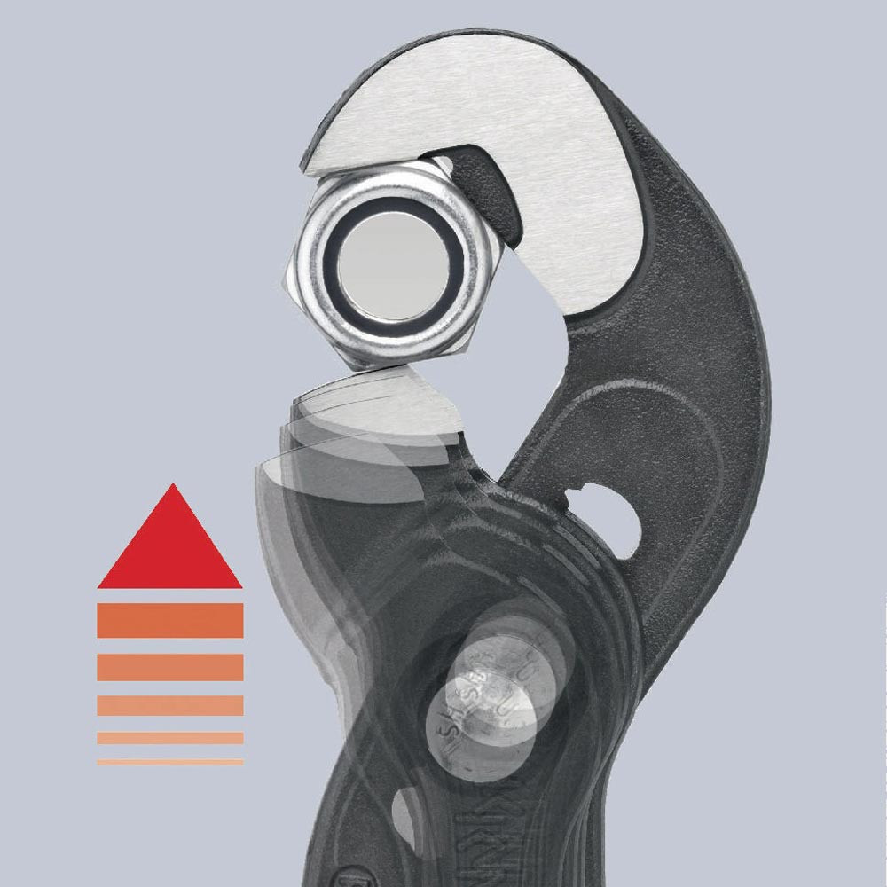 schnellverstellbar · 15 Einstellpositionen · Arbeiten nach dem Ratschenprinzip · sicheres Greifen verrundeter, verrosteter oder überlackierter Muttern · selbstklemmend ab 17 mm · Chrom-Vanadin-Elektrostahl, geschmiedet, mehrstufig ölgehärtet