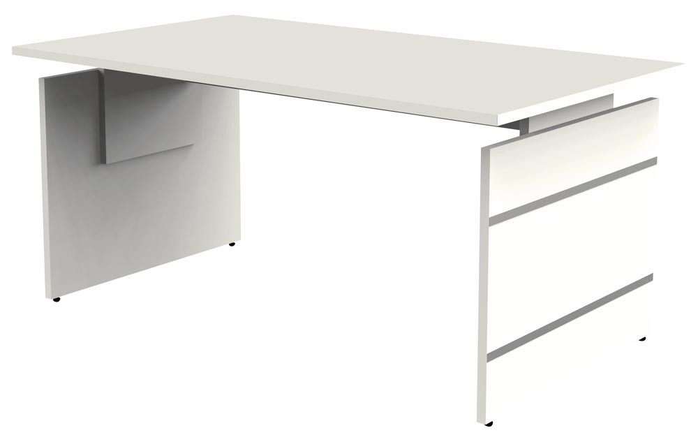 Schreibtisch, BxTxH 1600x800x680-760 mm, Wangen-Gestell weiß, Platte weiß, inkl. Kabelkanal