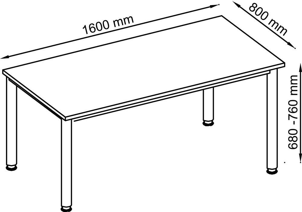 Schreibtisch, BxTxH 1600x800x685-810 mm, höhenverstellbar, 4-Fuß-Gestell, Platten-/Gestellfarbe lichtgrau/silber