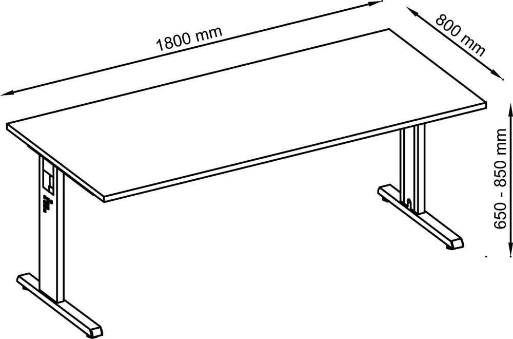 Schreibtisch, BxTxH 1800x800x650-850 mm, höhenverstellbar, C-Fuß-Gestell, Platte ahorn