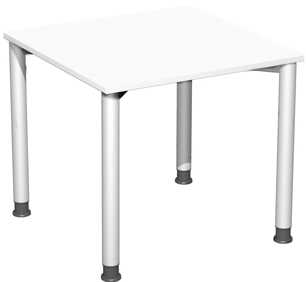 Schreibtisch, BxTxH 800x800x680-800 mm, höhenverstellbar, Platte weiß, Rundrohrgestell silber