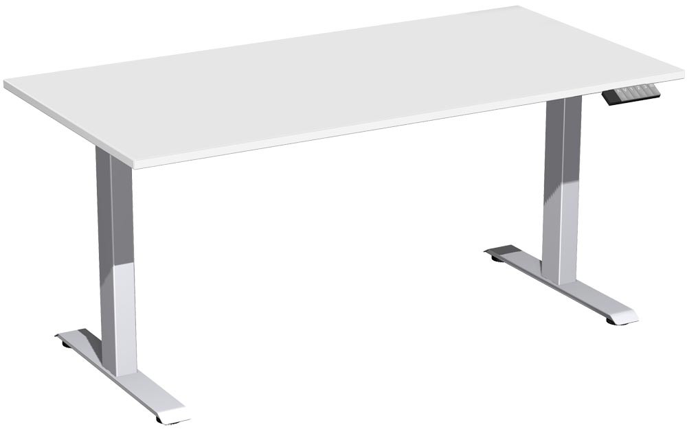 Schreibtisch, elektr. höhenverstellbar, BxTxH 1600x800x630-1280 mm, Melamin-Platte 25 mm, lichtgrau/silber EP561470