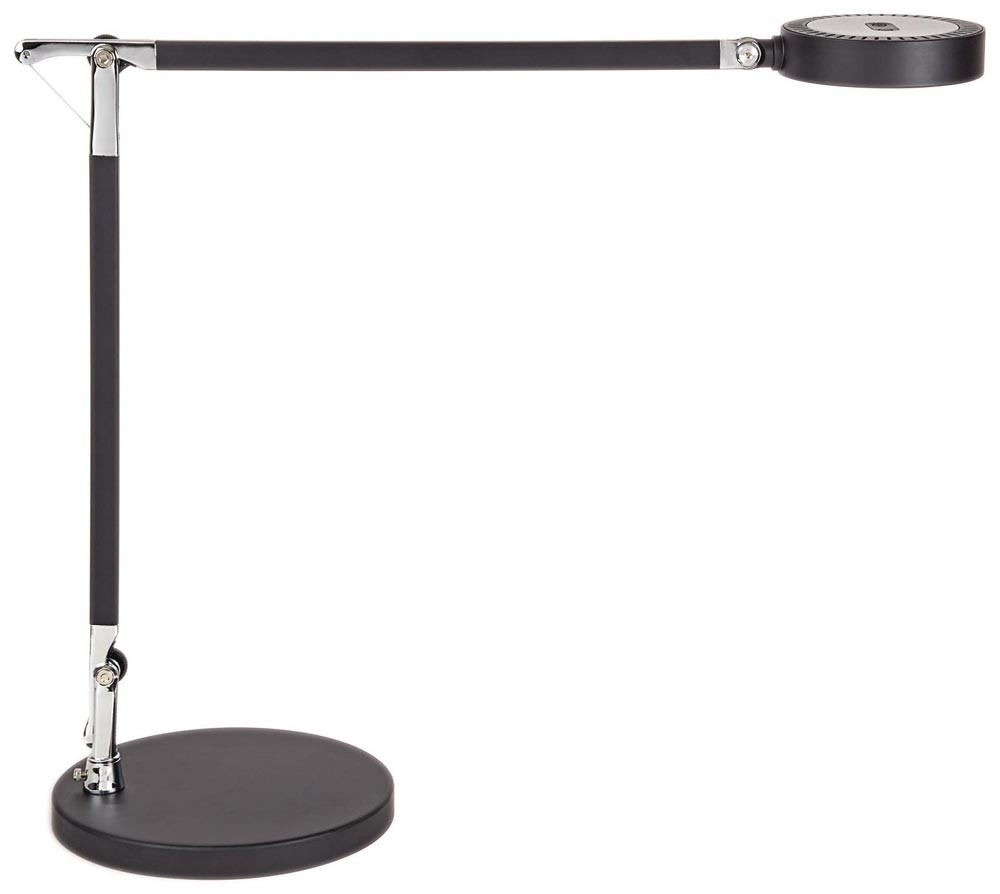Schreibtischleuchte Metall/Aluminium ∙ mit Standfuß ∙ Bedienung über Touchfeld am Leuchtenkopf, stufenlos dimmbar, Diffusor für geringen Schattenwurf ∙ Leuchtenkopf Ø 116 mm – drehbar, neigbar ∙ Armlänge unten/oben 365 mm - Höhe max. 466 mm ∙ Betriebsspannung 220-240 V ∙ Lichtfarbe 3.000 Kelvin - warmweiß bis 6.500 Kelvin - tageslichtweiß ∙ Lebensdauer 20.000 Stunden ∙ Lichtstrom 618 Lumen ∙ gewichteter Energieverbrauch 6 kWh/1000h ∙ Effizienzklasse F (Spektrum A bis G)