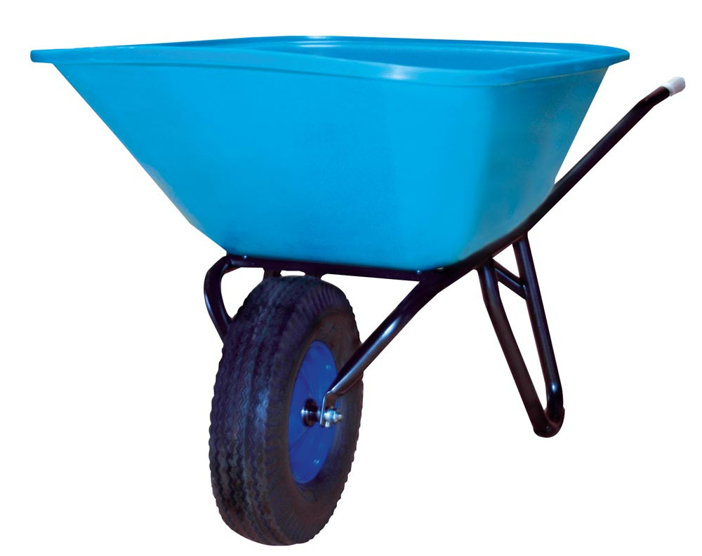 Schubkarre, Mulde 150 l, Kunststoff blau, Luftbereifung 4PR