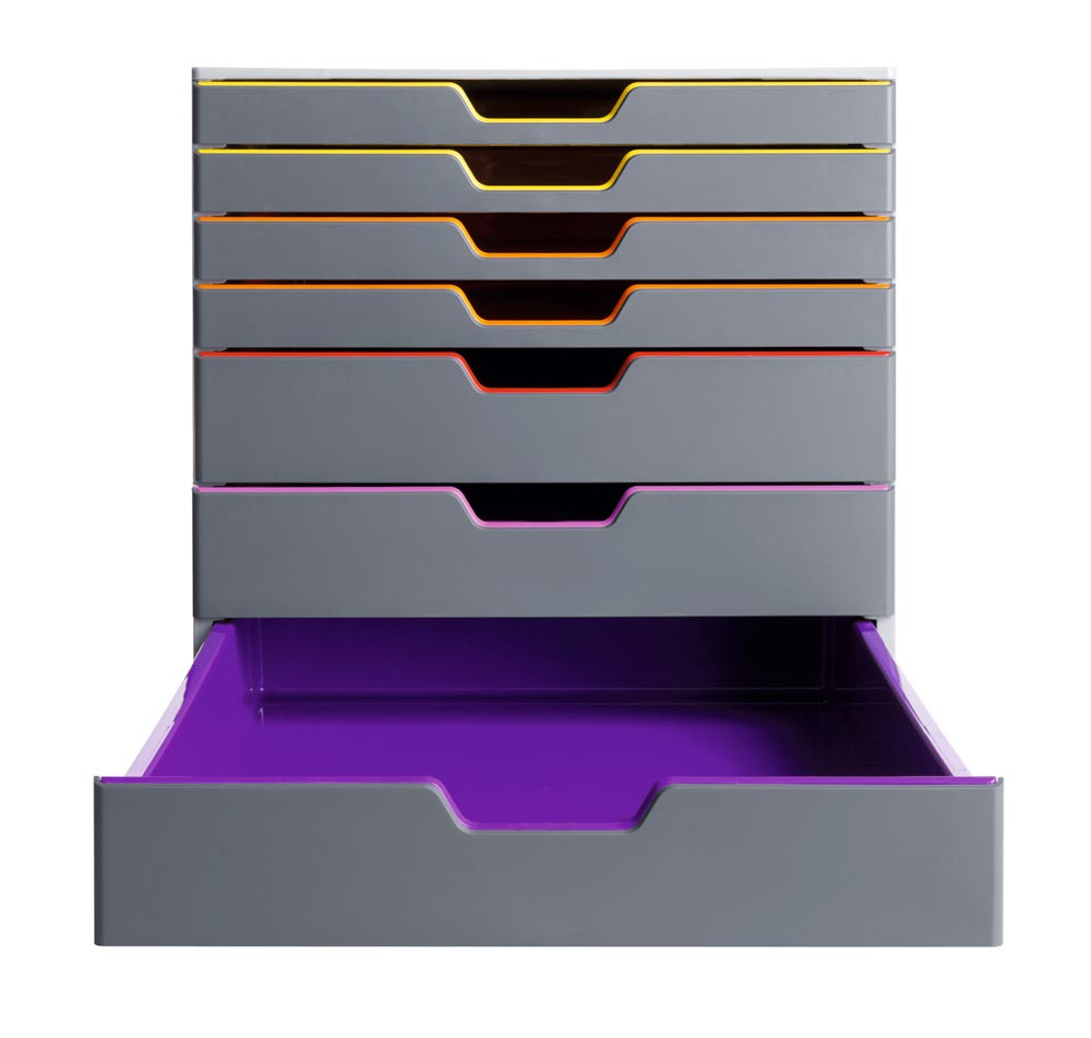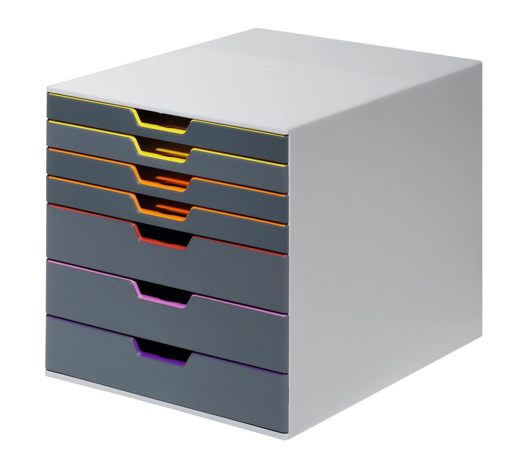 Schubladenbox, BxTxH 280x356x292 mm, 7 farbige Schubladen, aus ABS, inkl. Beschriftungsfenster EP517896