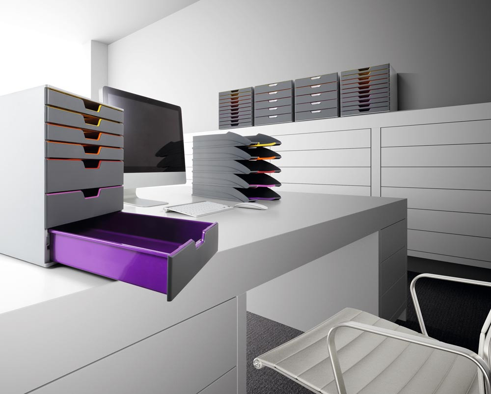 · Aus hochwertigem Kunststoff (ABS & PS) · Schubladen und Korpus in unterschiedlichen Farben · Für Formate DIN A4, C4 sowie Folio- und Letter-Size-Format · Geräuscharmer Schubladenleichtlauf mit Auszugssperre · Stapelbar · Rutschfeste Kunststofffüße · Inkl. transparenten Beschriftungsfenstern und computerbeschriftbaren, leicht auswechselbaren Einsteck-Etiketten