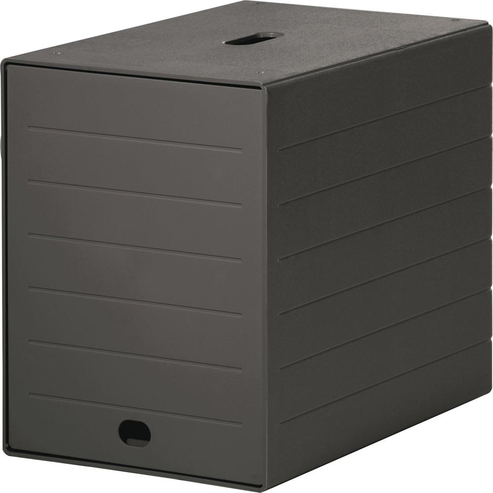 · Aus Polystyrol · Offene Schubladen · Staubschutz durch versenkbare Frontplatte · Stapelbar · Zur Nutzung auf dem Schreibtisch, Büro- & Thekenschränken oder in Regalen ∙ Ausführung anthrazit aus mind. 80% Recycling Material gefertigt