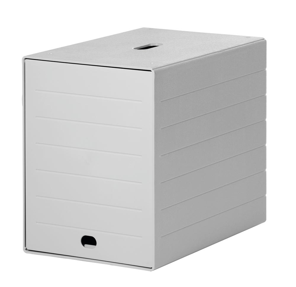 · Aus Polystyrol · Offene Schubladen · Staubschutz durch versenkbare Frontplatte · Stapelbar · Zur Nutzung auf dem Schreibtisch, Büro- & Thekenschränken oder in Regalen ∙ Ausführung anthrazit aus mind. 80% Recycling Material gefertigt
