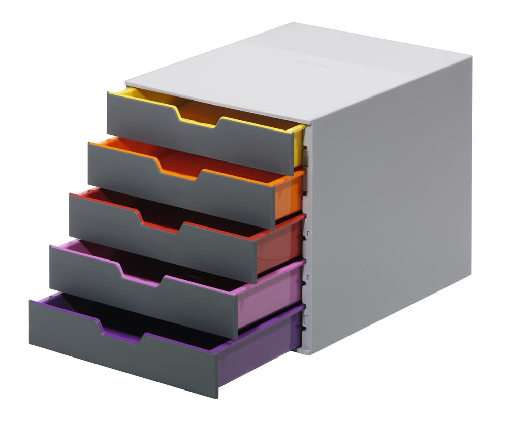 Schubladenbox, BxTxH 280x356x292 mm, 5 farbige Schubladen, aus ABS, inkl. Beschriftungsfenster EP517895