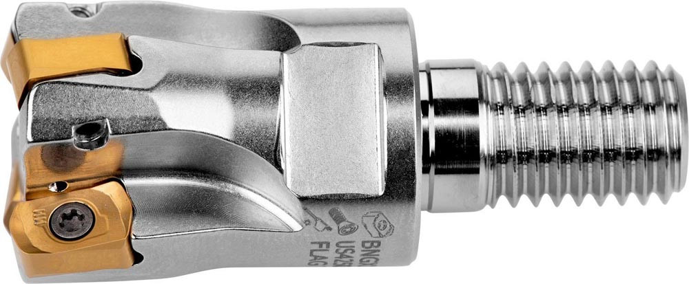 Hochvorschubfräser mit positiver/negativer Geometrie zum spannen von 3 Stück BNGX 10T3.. oder ANHX 10T3.. Wendeschneidplatten · Schnittdurchmesser 20mm mit 20° Anstellwinkel und M10 Gewindeschaft für modulare Standardhalter · 30mm Überstandslänge · Kühlkanalbohrung zum Planfräsen · Kopierfräsen · flachen Schulterfräsen · Rampen · Helikalen Fräsen · Tauchfräsen und progressiven Eintauchen mit einer maximalen Schnitttiefe von 1.0mm