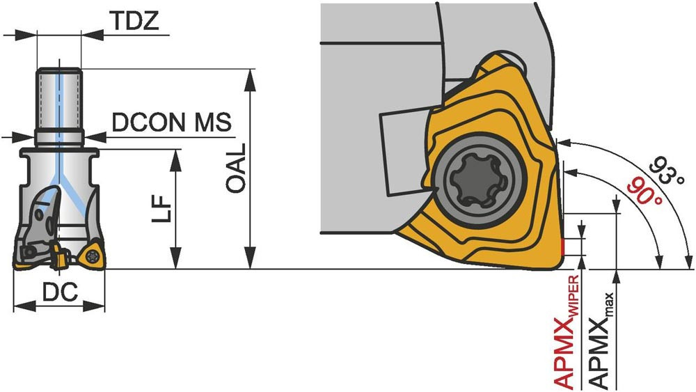 Kopier-Planfräser mit doppelt negativer Geometrie zum spannen von 6 Stück WNHX 0403.. doppelseitigen Wendeschneidplatten · Schnittdurchmesser 35mm mit 93° Anstellwinkel und M16 Gewindeschaft für modulare Standardhalter · 43mm Überstandslänge · Kühlkanalbohrung und ungleiche Teilung zum Planfräsen · Kopierfräsen · flachen Schulterfräsen · tiefen Schulterfräsen · Rampen und Tauchfräsen mit einer maximalen Schnitttiefe von 0.5mm