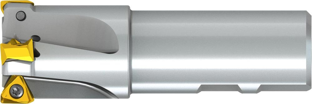Eck-und Planfräser mit doppelt negativer Geometrie welche 4 aus TNGX 1606.. doppelseitige Wendeschneidplatte · Schneiddurchmesser 40mm mit 90° Anfahrwinkel und 32mm Weldonschaft gemäß DIN 1835B · 50mm anwendbar und 120mm Gesamtlänge · durchgehende Kühlung zum Planfräsen · flachen Schulterfräsen · flachen Nutfräsen und Spiralfräsen in vorbearbeiteten Löchern