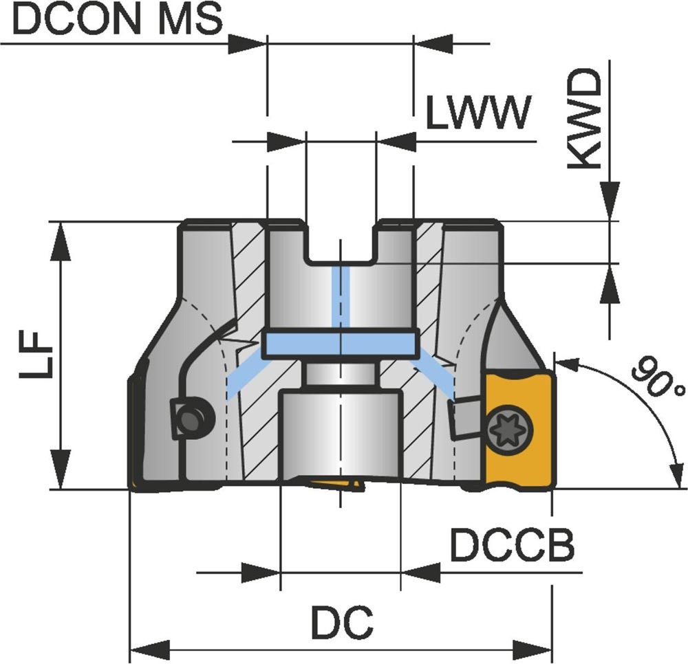 Schulterfräser ISO 63A04R-S90LN16-C D.22mm Rechtslauf Schneid-D.63mm