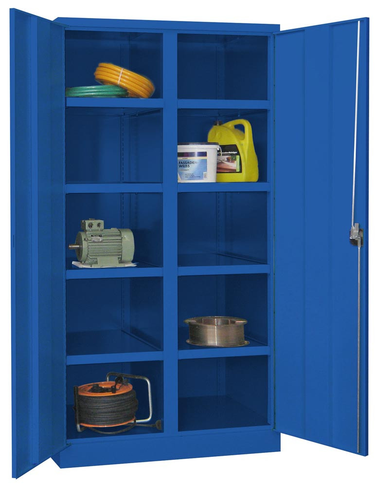 Schwerlastschrank, Vollblechtüren, mit Trennwand, 8 beschichtete Böden, BxTxH 1040x630x1950 mm, RAL 5010 EP528630