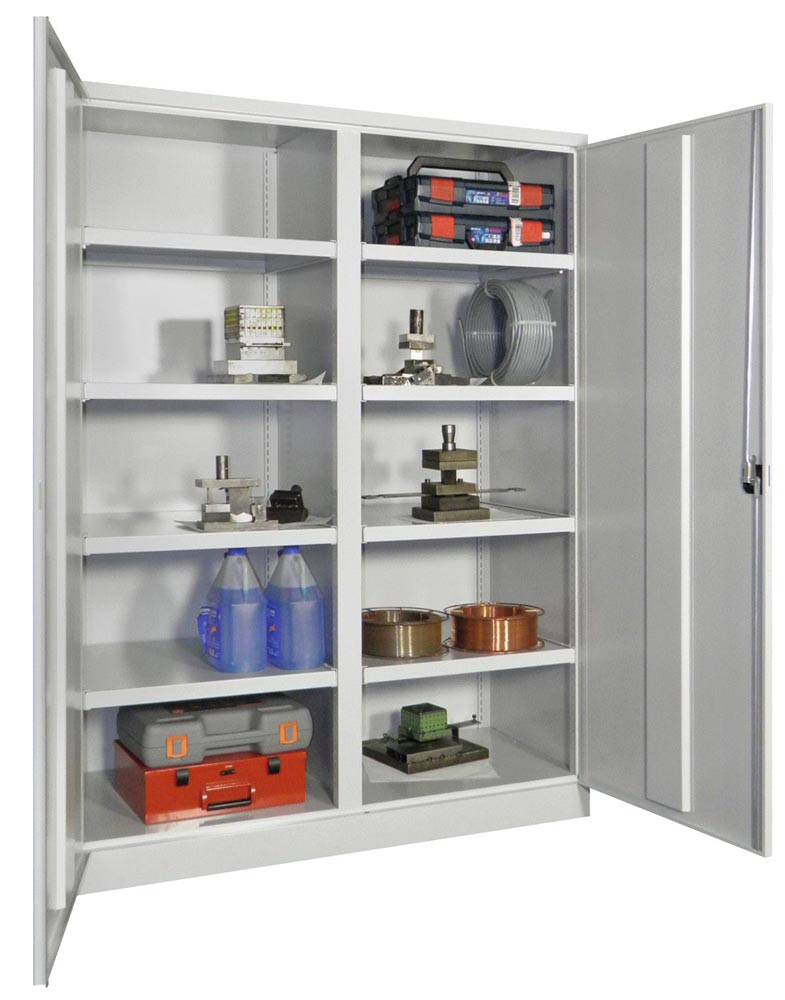 Schwerlastschrank, Vollblechtüren, mit Trennwand, 8 beschichtete Böden, BxTxH 1040x 630x1950 mm, RAL 7035/3000 EP528403