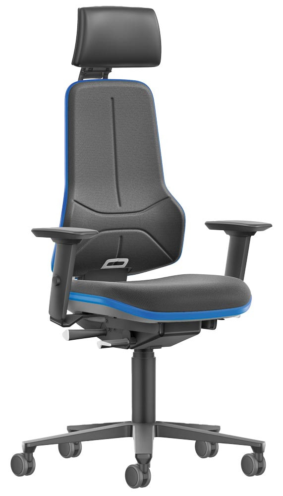 · Gefertigt nach DIN 68877 · Robuste und sichere Bauweise · Schwerlastbauteile: Gestell, Rollen, Mechanik, Gasdruckfeder, Fußkreuz und Polster · XXL - Gewichtsregulierung von 80 bis 180 kg · Schwerlast - Armlehnen mit größerer Breite · Sitztiefenverstellung · Rückenlehnenhöhenverstellung · Fußkreuz aus Aluminium · Neigbare und höhenverstellbare Kopfstütze · Flexbandfarbe in blau · Ergonomisch geformte Sitzfläche und Rückenlehne