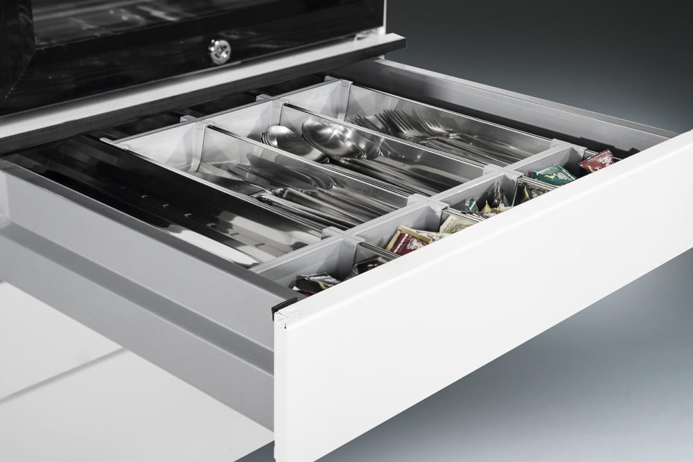 · 1 Schublade mit Besteckfach und Kleinteileschubkasten aus Edelstahl