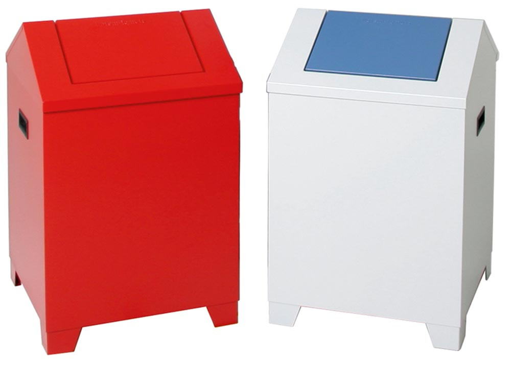 ∙ Robuste Konstruktion aus verzinktem Stahlblech ∙ Umweltfreundliche Pulverbeschichtung ∙ Schlag- und kratzfest · Mit selbstschließender Pendelklappe, feuer- und geruchshemmend ∙ Die beiden seitlich eingelassenen Tragegriffe erleichtern das Handling ∙ Volumen 73 Liter ∙ B x T x H 400 x 400 x 680 mm