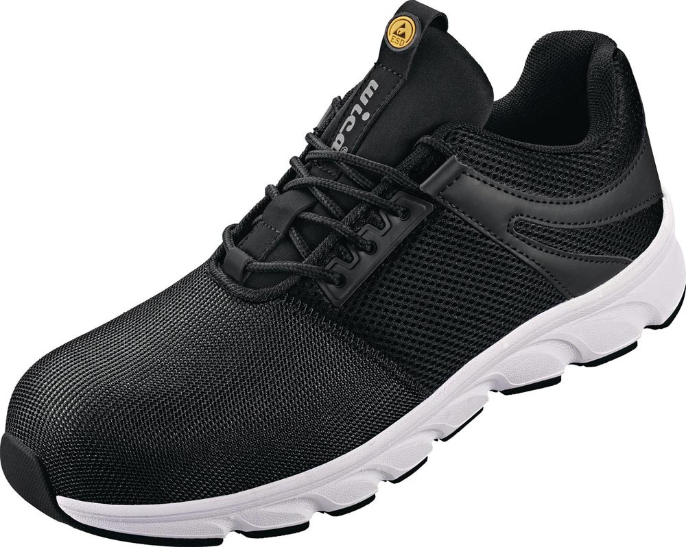 nach EN ISO 20345 · S1P ESD SRA · Schuhweite: 10,5 · Schaft aus Textilmaterial · ergonomisch geformter, gepolsterter Schaftrand aus synthetischem Material · angenähte, gepolsterte Lasche aus Textilmaterial · Verschluss mit dehnbaren Textilösen · herausnehmbares, anatomisches Fußbett · Fiberglaskappe und durchtrittsichere Gewebezwischensohle · antistatische, öl- und säurebeständige, rutschhemmende und super leichte EVA/Gummi-Laufsohle · sportliche Laufsohle · komplett metallfrei · Einsatzbereich: Lager, Spedition, Industrie etc.