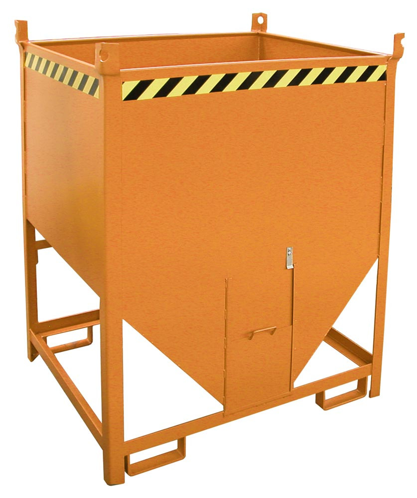Silobehälter, LxBxH 1000x1200x1025 mm, Vol. 0,5 cbm, Traglast 750 kg, stirnseitiger Schieberverschluss, lackiert RAL 2000 gelborange EP524991