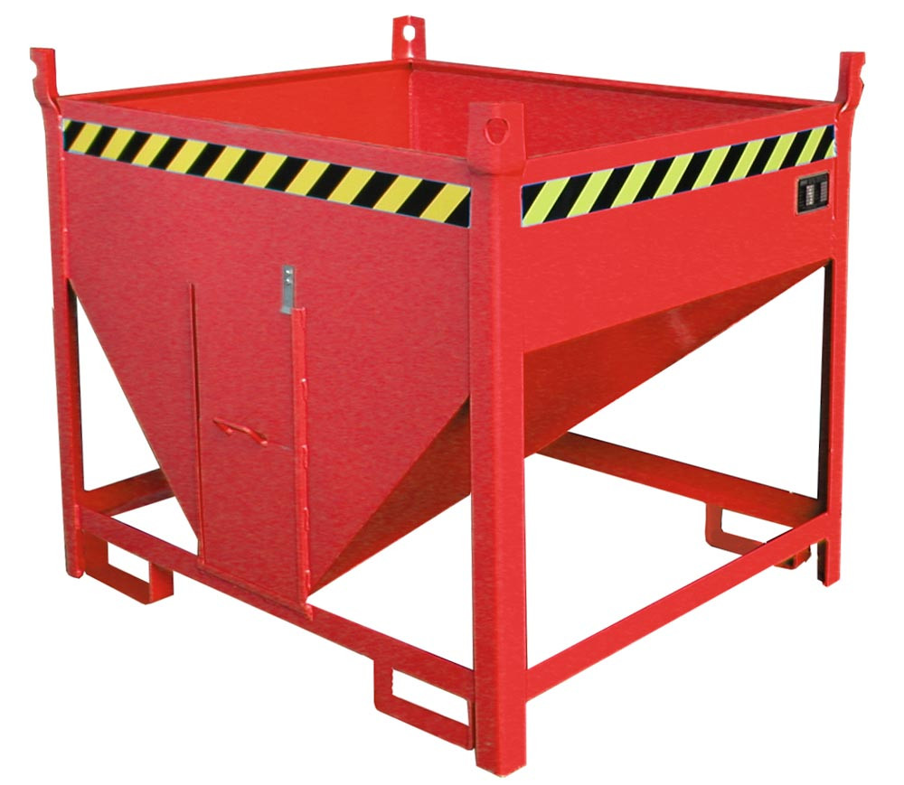 Silobehälter, LxBxH 1000x1200x1025 mm, Vol. 0,5 cbm, Traglast 750 kg, stirnseitiger Schieberverschluss, lackiert RAL 3000 feuerrot EP524992