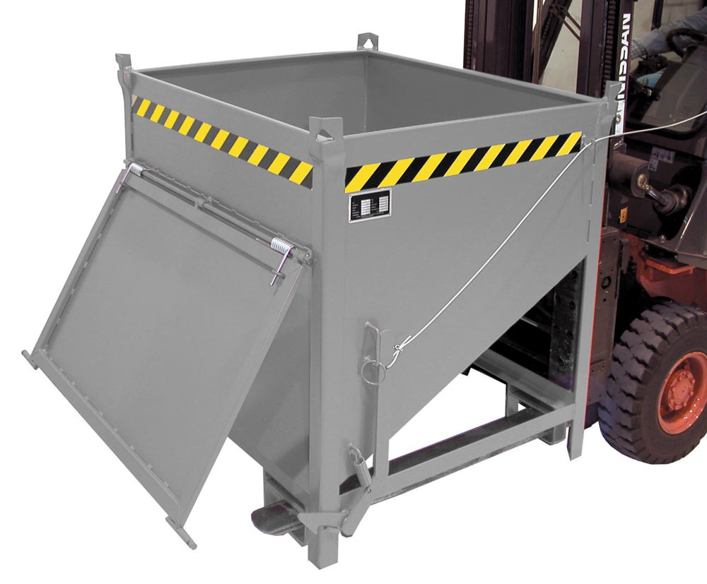 Silobehälter, LxBxH 1000x1200x935 mm, Vol. 0,5 cbm, Traglast 750 kg, stirnseitige Klappe, lackiert RAL 7005 mausgrau EP524980