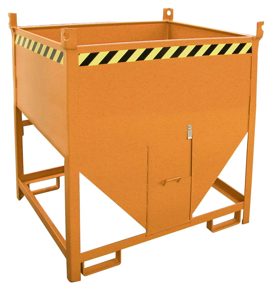 Silobehälter, LxBxH 1000x1200x1025 mm, Vol. 0,5 cbm, Traglast 750 kg, stirnseitiger Schieberverschluss, lackiert RAL 2000 gelborange EP524991