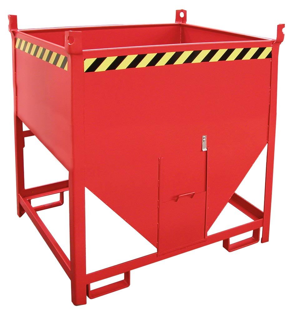 Silobehälter, LxBxH 1000x1200x1025 mm, Vol. 0,5 cbm, Traglast 750 kg, stirnseitiger Schieberverschluss, lackiert RAL 3000 feuerrot EP524992