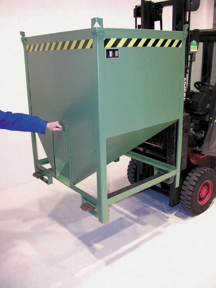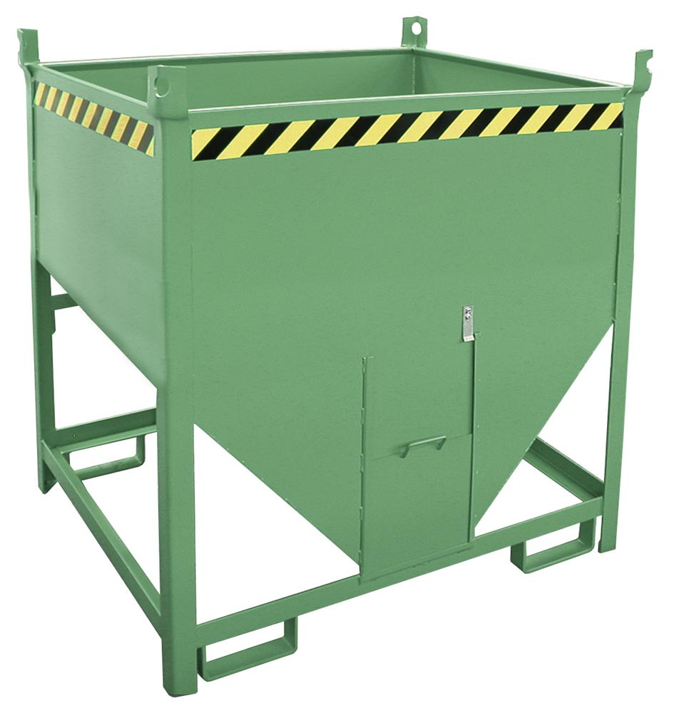 Silobehälter, LxBxH 1000x1200x1025 mm, Vol. 0,5 cbm, Traglast 750 kg, stirnseitiger Schieberverschluss, lackiert RAL 6011 resedagrün EP524994