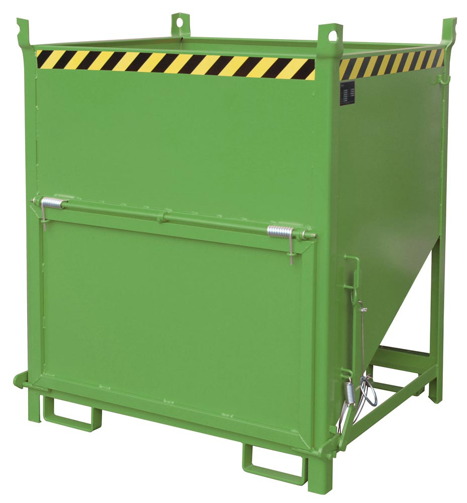 Silobehälter, LxBxH 1000x1200x1405 mm, Vol. 1,0 cbm, Traglast 1500 kg, stirnseitige Klappe, lackiert RAL 6011 resedagrün