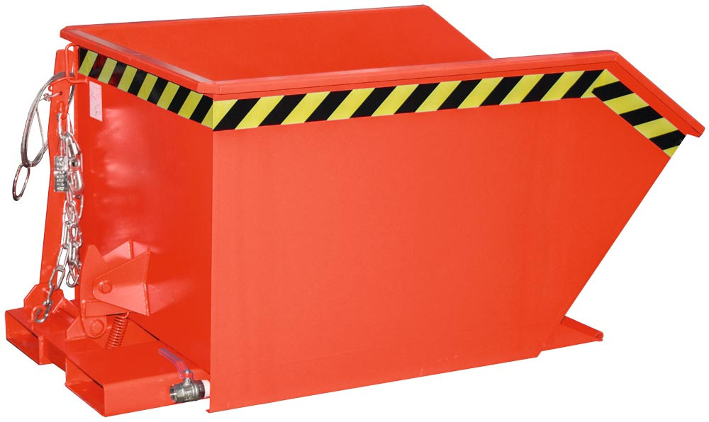 Späne-Selbstkippbehälter, Volumen 0,5 cbm, LxBxH 1440x780x680 mm, lackiert RAL 3000 rot