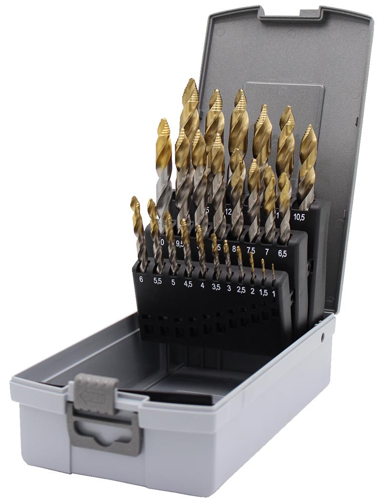 Spiralbohrer-Satz HSS-GK Tornado Drill 24tlg. TIN 1,0-10,5 inkl. Kernlochbohrer E6421563
