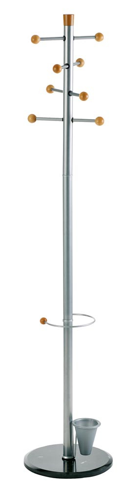 Standgarderobe, Durchm.xH 380x1750 mm, 8 Mantelhaken, Schirmständer, aus Metall mit Mamorfuß, silber