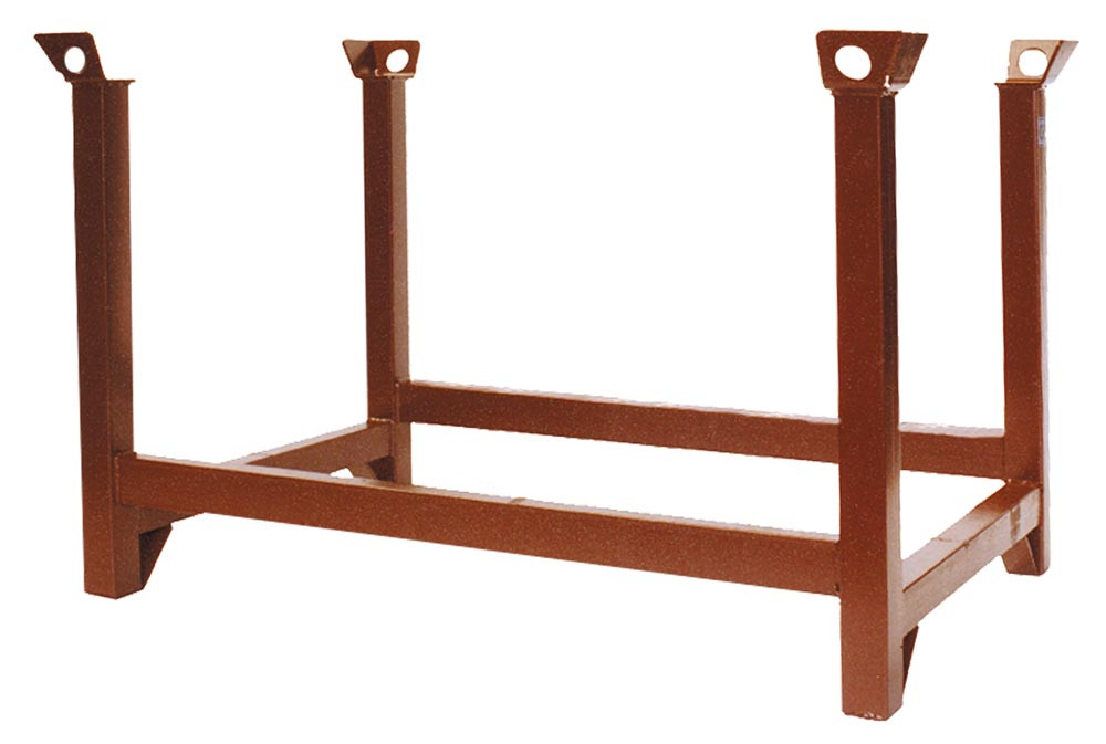 · Stahlblechkonstruktion mit profilierten Eckpfosten · Breite Füße und weite Stapeltaschen · Mit Kranösen · 3-fach stapelbar bei voller Last · Nutzhöhe 600 mm
