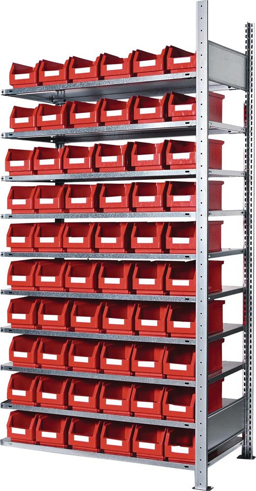 Steckregal H2000xB1000xT300mm Anbauregal 10 Stahlböden 60 x Gr. 5 rot