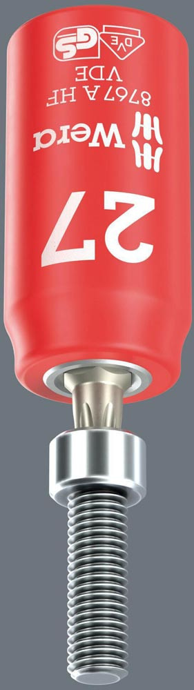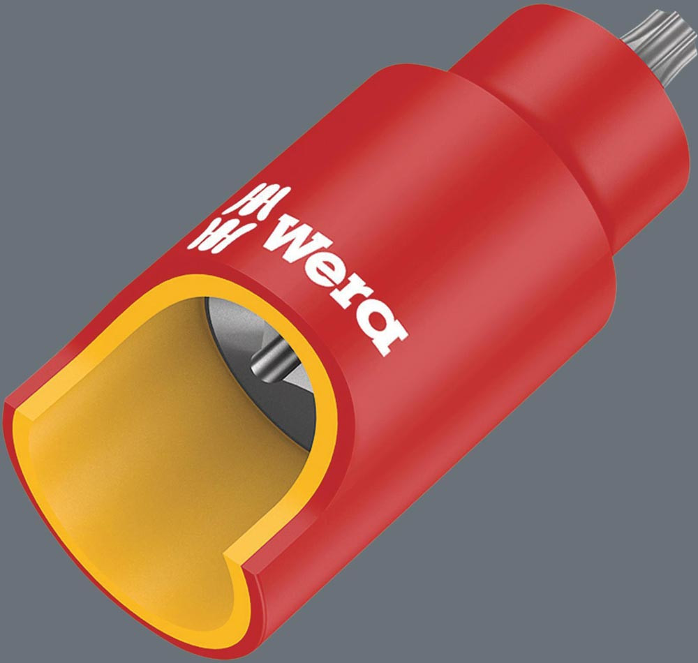 VDE · mit Haltefunktion für TORX®-Schrauben für besonders komfortables Schrauben durch reduzierte Gefahr des Schraubenverlustes beim Zuführen zum Werkstück · mit erhöhter Sicherheit durch gelben Isolationskern, der bei einer eventuellen Beschädigung der äußeren roten VDE Isolationsschicht sichtbar wird · stückgeprüftes Werkzeug gem. IEC 60900 bei 10.000 V für sicheres Arbeiten bei der zugelassenen Spannung von 1.000 V