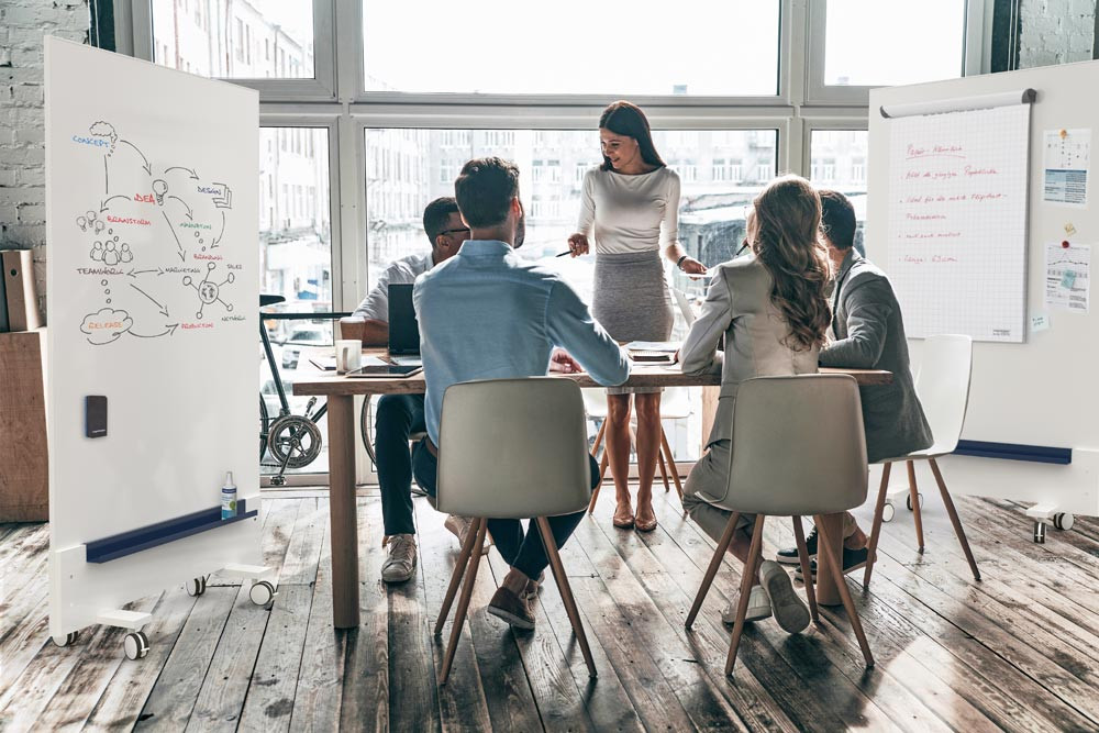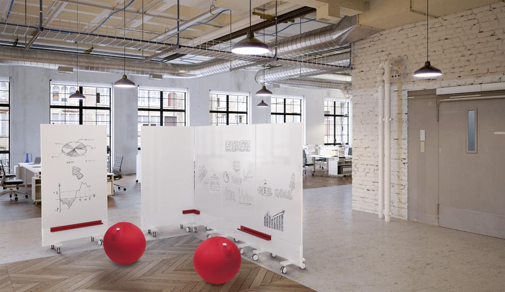 Stellwand, mobil, beidseitig emailliert, beschreibbar, BxH 1000x1910 mm, weiß EP554563